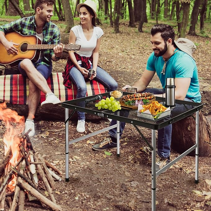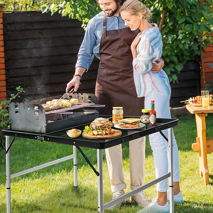 【Easy Installation】Our grill table is incredibly easy to set up. Simply unfold the grill table, select the desired height for the table legs, and secure them with the triangular reinforcement locks and safety latches. A brand new portable camping table is shown in front of you, bring your delicious food and share a good outdoor time with your family and friends.